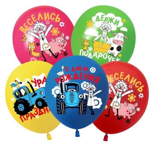 Шар латексный (12/30см) - С ДР, Синий трактор ассорти