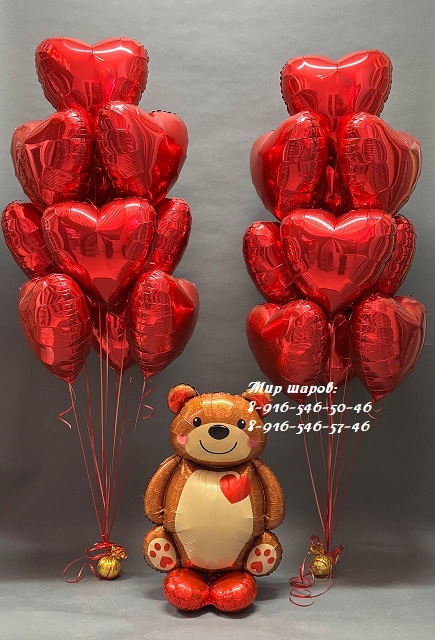 1 Фонтан из 10 фольгированных сердец - 3600р. Фольгированный мишка - 650р.