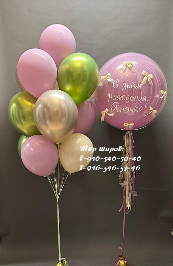 "Стеклянный шар" - с индивидуальной надписью + бантики с одной стороны - 3500р Фонтан из 7 латексных шаров без рисунка + 6 шаров хром - 2610р