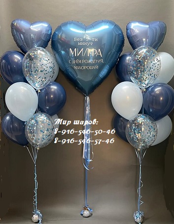 Фольгированное сердце с индивидуальной надписью - 1650р. 1 Фонтан из 7 латексных шаров без рисунка + 2 с конфетти + фольгированное сердце - 2080р