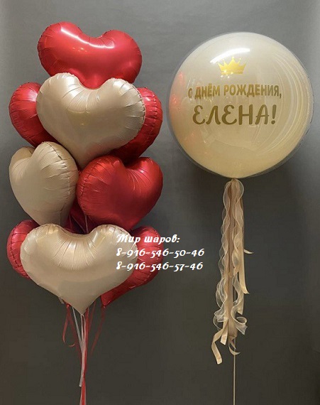"Стеклянный шар" с индивидуальной надписью - 3500р. Фонтан из 10 фольгированных сердец - 4600