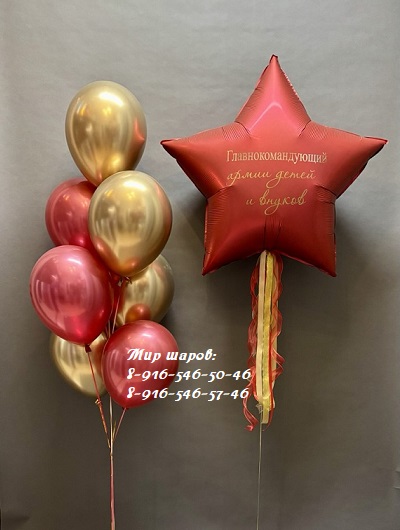 Фонтан из 7 шаров хром - 1640р. Фольгированная звезда с индивидуальной надписью - 1650р.