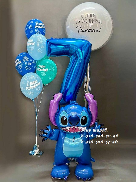 Фонтан из 7 латексных шаров с рисунком - 1360р. "Стеклянный шар" с индивидуальной надписью - 3500р. Фольгированная цифра с грузиком - 1000р. Фольгированный стоячий монстрик - 850р.