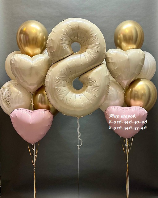 1 Фонтан из 2 латексных шаров без рисунка + 2 шара хром + 2 шара даблстаф + 2 фольгированных сердца - 2080р. Фольгированная цифра с грузиком - 1000р.